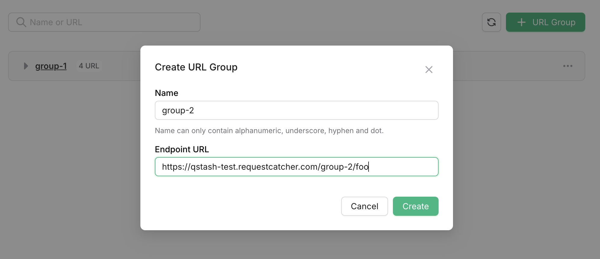Go to console.upstash.com/qstash and click on theURL Groups tab. Afterwards you can create a new URL Group by giving it a name.