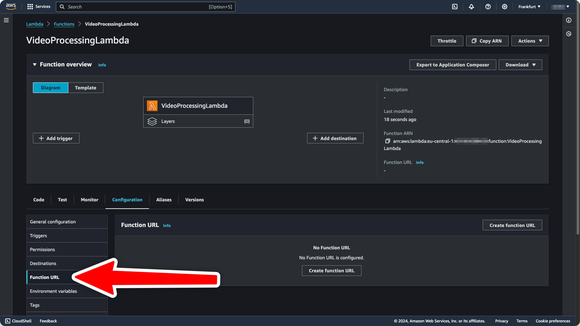 Create a new Lambda function from scratch by going to the AWS console. (Make sure you select your desired region) Give it a name and selectPython 3.8 as runtime, then create the function.