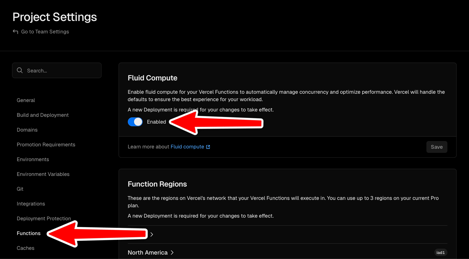 To deploy Upstash Realtime to Vercel, enable Fluid Compute for your project. For new projects, this is enabled by default. Fluid Compute allows for less cold-starts, has much higher function timeouts compared to serverless functions, and most importantly only bills for active CPU time. That way, you’re only billed for actual message processing time, not connection duration.