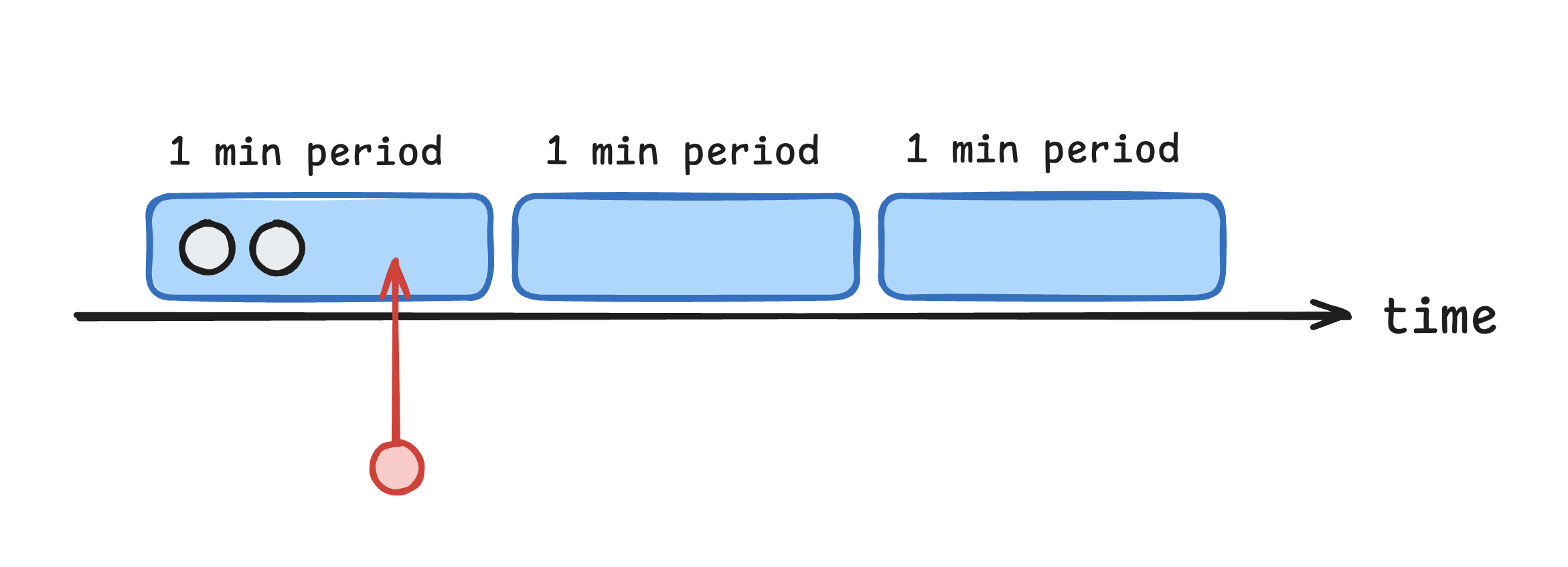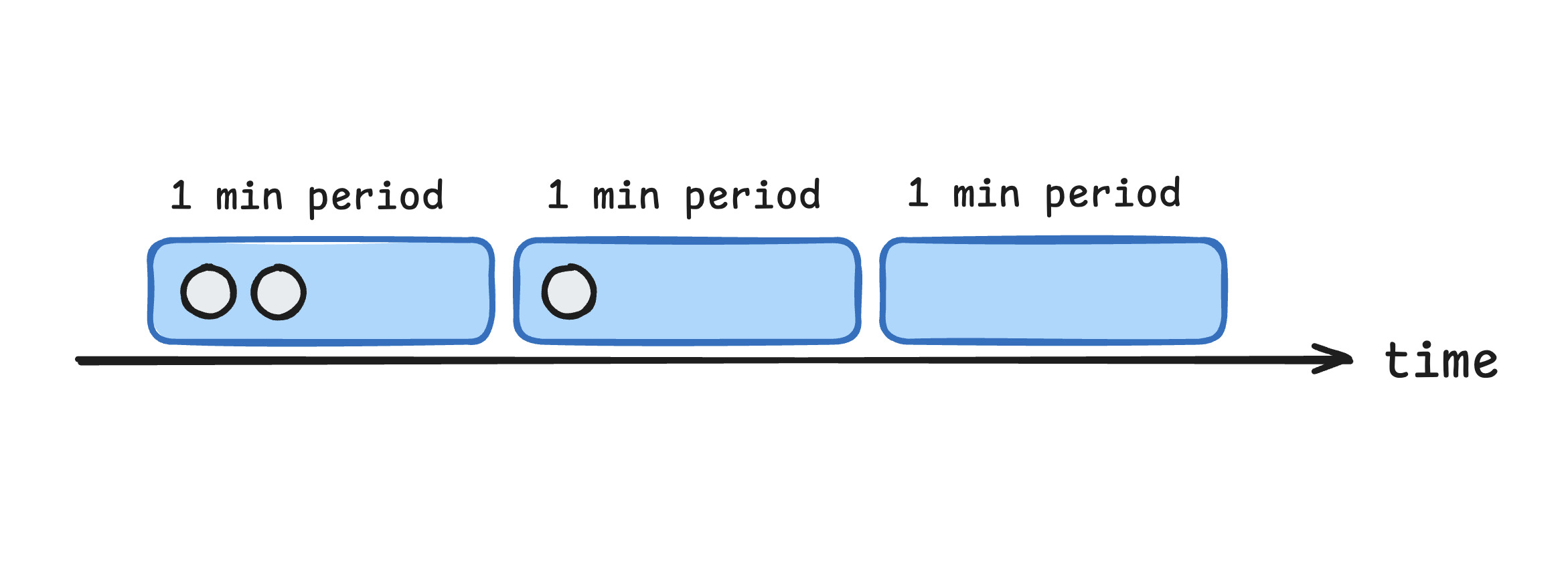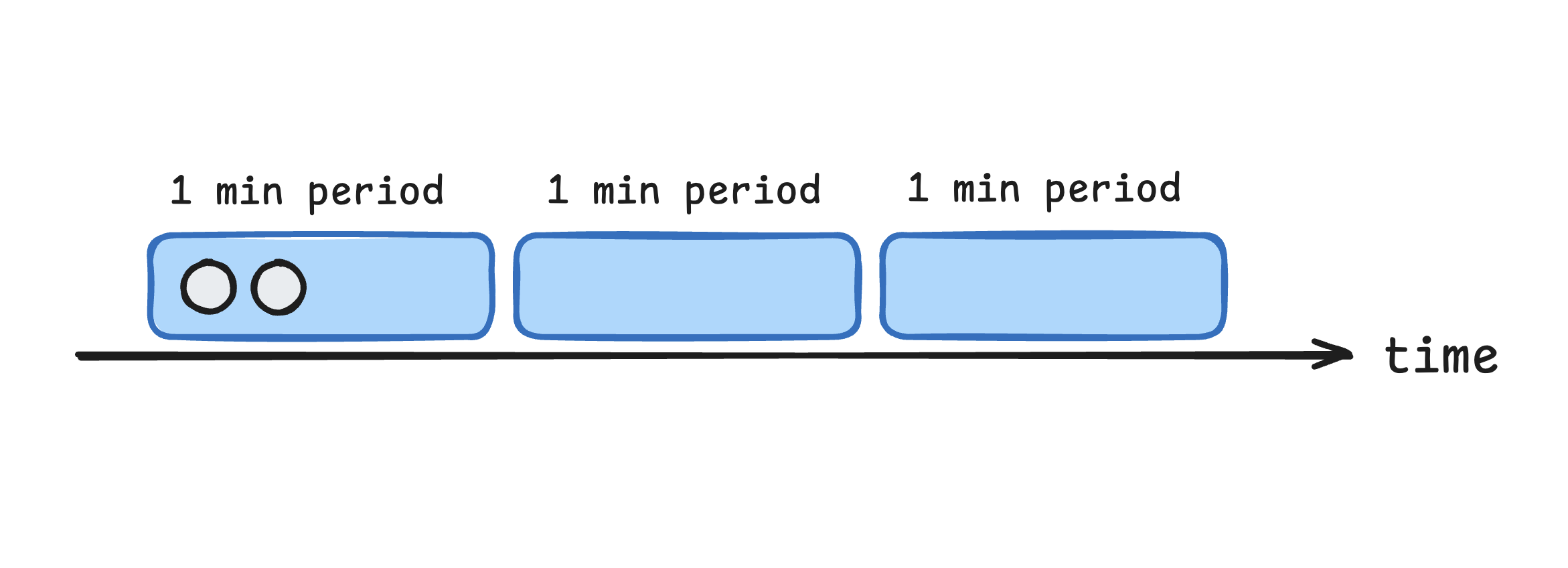 The first 2 requests within the minute are executed immediately: